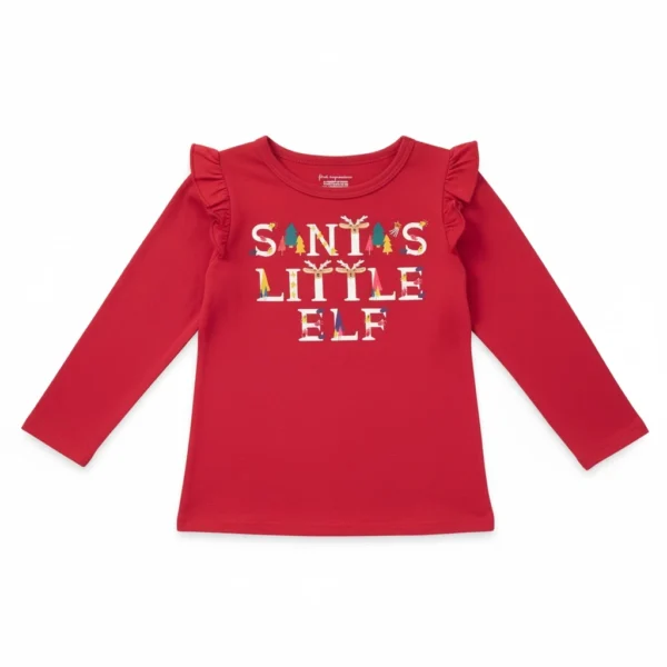 بلوز قرمز طرح کریسمس دخترانه First Impressions