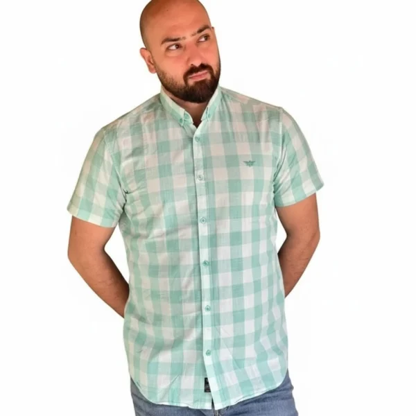 پیراهن آستین کوتاه چهارخانه سبز مردانه کانی راش