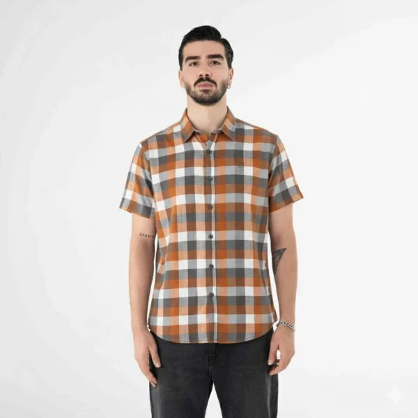 پیراهن آستین کوتاه چهارخانه کانی راش