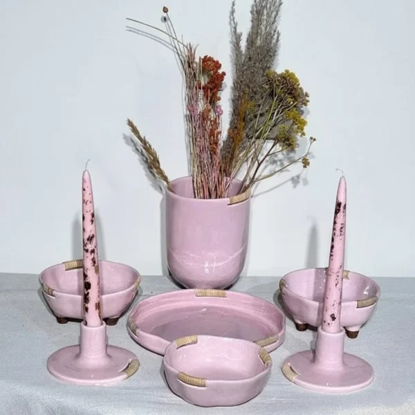 هفت سین سرامیکی صورتی با چوب بامبو فام