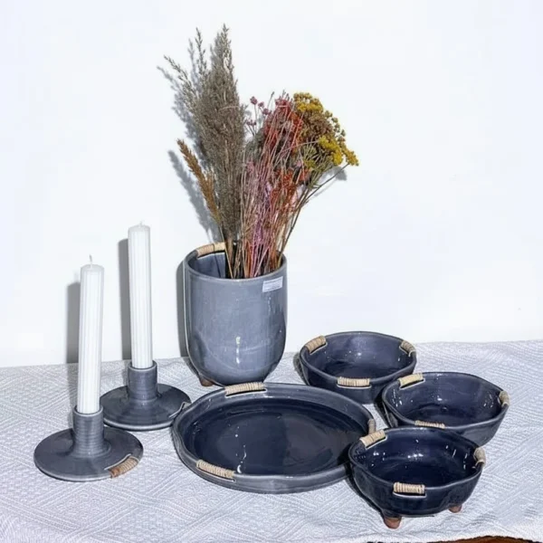هفت سین سرامیکی طوسی با چوب بامبو فام