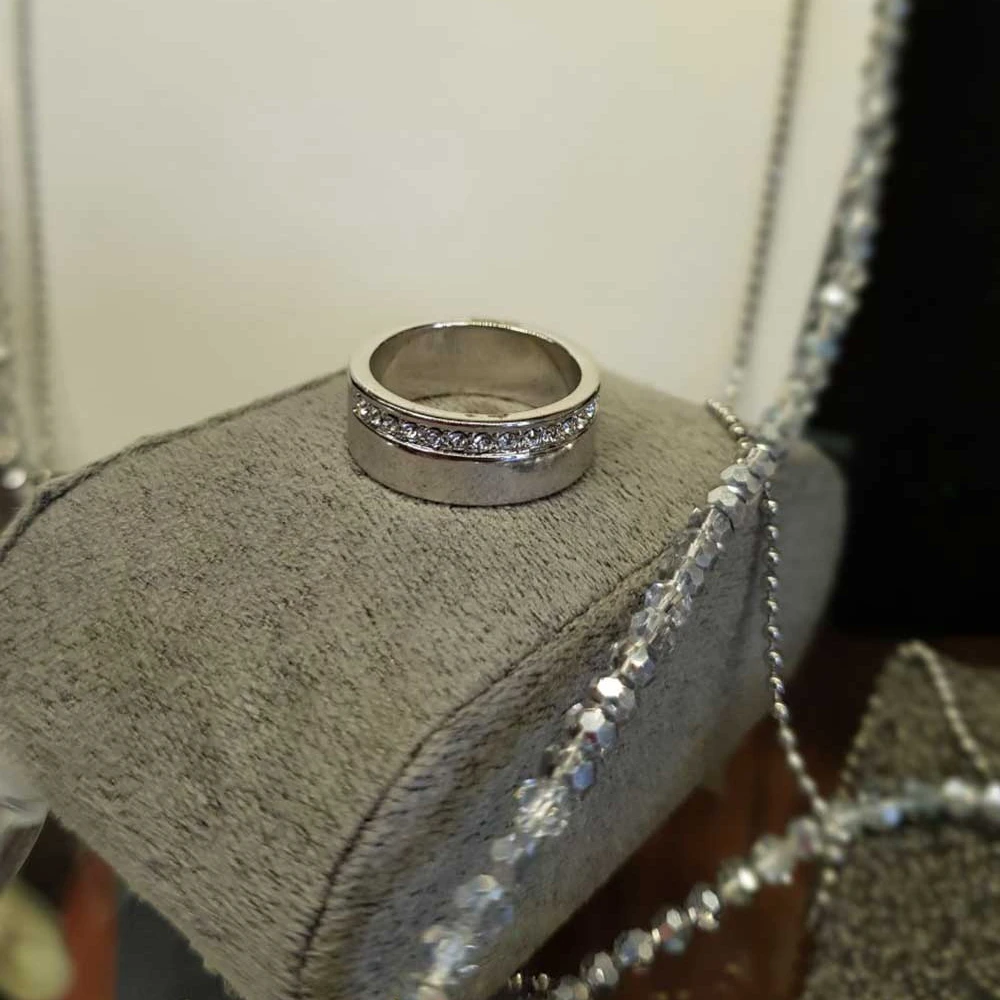 انگشتر برنجی طرح حلقه چیبو کد 346875 Tchibo با روکش رادیوم خود که درخشش معروف زیورآلات چیبو بخاطر آن است، دارای نگین های سواروسکی بوده و ترکیب فوق العاده شیکی در عین سادگی دارد. چیبوکالا از آن در سایزهای 17,18,19,20 موجود دارد.