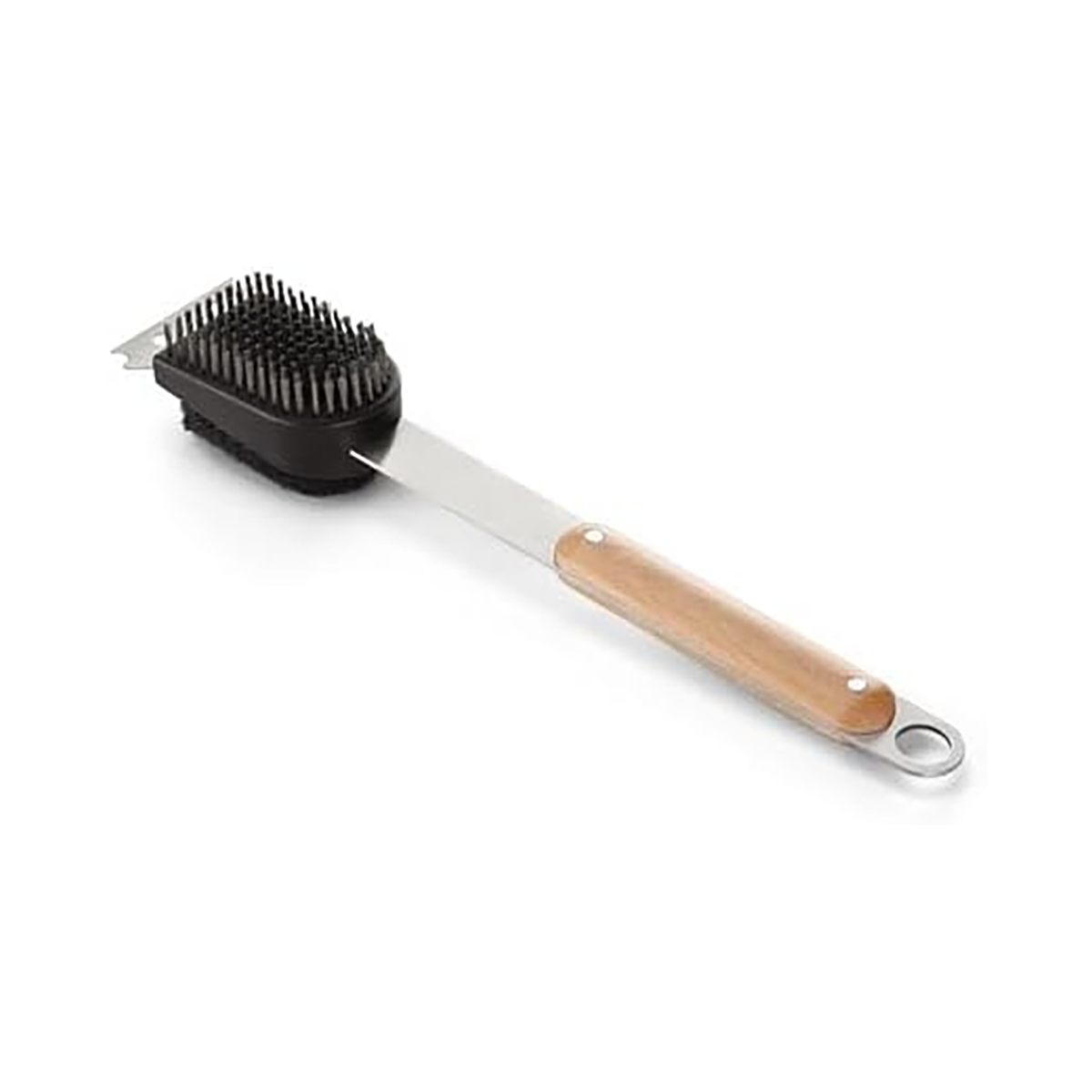دسته ارگونومیک از چوب راش پایدار با روکش روغنی ساخته شده و دارای سوراخ آویز است تا همیشه در دسترس باشد. سری برس و خراش دهنده از استیل ضدزنگ 18/10 ساخته شده که مقاومت بالایی در برابر زنگ زدگی و فرسایش دارند.