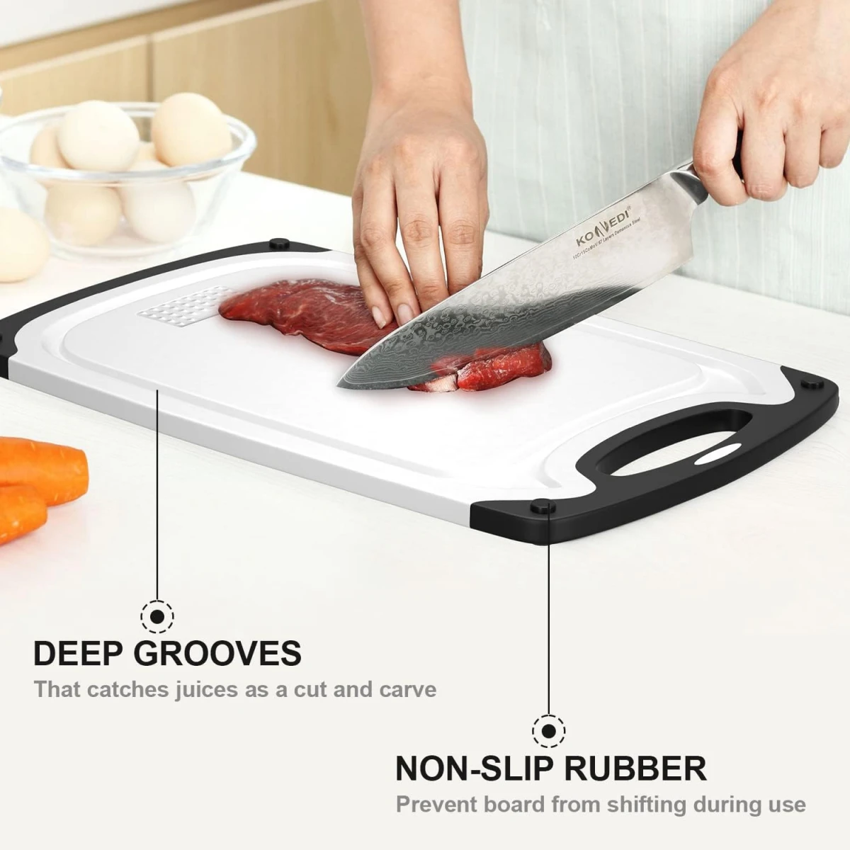 در هر آشپزخانه ای، تخته برش یکی از پرکاربردترین ابزارها به شمار می رود. انتخاب یک تخته برش مناسب می تواند تأثیر زیادی بر سرعت، دقت و بهداشت آشپزی داشته باشد. تخته آشپزخانه دو طرفه اکوهوم 3 عددی با طراحی کاربردی و ویژگی های منحصر به فرد، گزینه ای ایده آل برای آشپزخانه های خانگی و حتی استفاده نیمه حرفه ای است.این مجموعه شامل سه تخته برش در اندازه های مختلف است که امکان تفکیک مواد غذایی را به راحتی فراهم می کند. تخته بزرگ برای برش گوشت و استیک، تخته متوسط برای سبزیجات و تخته کوچک برای میوه ها طراحی شده است. این تفکیک نه تنها باعث نظم بیشتر در آشپزی می شود، بلکه به حفظ بهداشت و جلوگیری از انتقال آلودگی میان مواد غذایی نیز کمک می کند.وجود شیار جمع کننده آب در لبه تخته ها باعث می شود آب و عصاره گوشت، میوه یا سبزیجات هنگام برش روی سطح کابینت پخش نشود. این ویژگی به حفظ تمیزی محیط آشپزخانه کمک کرده و فرآیند آشپزی را حرفه ای تر و راحت تر می کند.پایه های لاستیکی ضدلغزش و دسته خوش دست، باعث می شوند تخته برش هنگام استفاده روی سطح ثابت مانده و به راحتی جا به جا نشود. این موضوع علاوه بر افزایش ایمنی، کنترل بهتری هنگام برش مواد غذایی به کاربر می دهد.تخته های برش از پلاستیک ضخیم و غیرمتخلخل ساخته شده اند که در برابر جذب بو و لکه مقاوم است. این ویژگی آن ها را کاملاً بهداشتی کرده و امکان شست و شوی آسان در ماشین ظرفشویی را فراهم می کند. همچنین طراحی دو طرفه تخته ها به افزایش طول عمر محصول کمک می کند و سطحی سازگار با تیغه چاقو در اختیار شما قرار می دهد.تخته برش پلاستیکی سه تایی ECO HOME دارای ابعاد متفاوتی دارد. سایز کوچک آن حدود 25×15 سانتی متر، سایز متوسط حدود 33×20 سانتی متر و سایز بزرگ حدود 40×24 سانتی متر می باشد. این محصول BPA Free بوده و فاقد مواد شیمیایی مضر است.