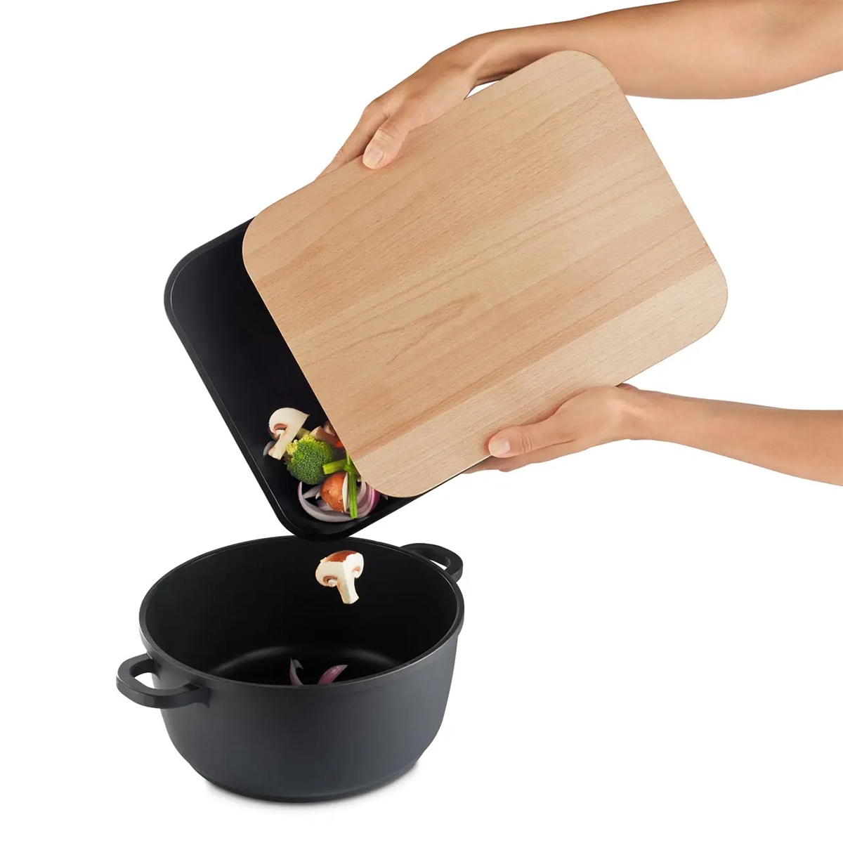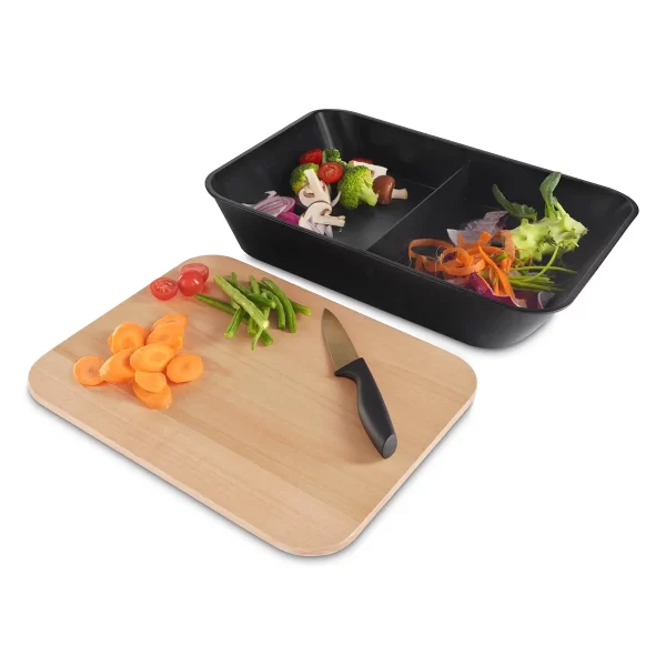 تخته چوبی برش با ظرف نگهداری مواد غذایی چیبو فرآیند برش و آماده سازی مواد اولیه را بسیار راحت تر می کند. یکی از انتخاب های محبوب برای آشپزهای حرفه ای و خانگی است. دارای محفظه ای با طراحی هوشمند بوده که به شما امکان می دهد تا مواد برش خورده یا ضایعات را به طور جداگانه در دو قسمت مختلف جمع آوری کنید.