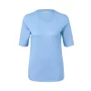 لباس های آستین کوتاه یا بدون آستین برای راحتی و استراحت طراحی شده اند که آن ها را به یک گزینه عالی برای آب و هوای گرم تبدیل می کند. تیشرت راحتی آبی زنانه چیبو با آستین افتاده و کوتاه راحتی بی نظیری را برایتان فراهم می کند. لبه آستین و یقه این تیشرت از رنگ قهوه ای استفاده شده که به زیبایی و جذابیت این تی شرت می افزاید.
