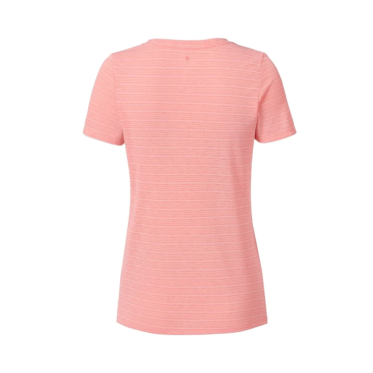 تی شرت تنفس پذیر ورزشی زنانه Tchibo با رنگ صورتی، یقه گرد و آستین کوتاه طراحی شده است. طول حدودی آن 68 سانتی متر است و سایز موجود در فروشگاه چیبوکالا S , L , XS می باشد. برای شستشوی آن می توانید از ماشین لباسشویی با چرخه 40 درجه سانتی گراد استفاده نمایید.