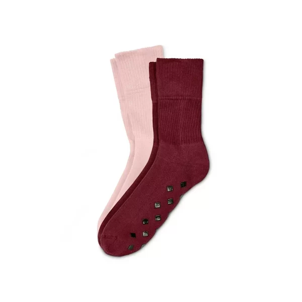 جوراب صورتی و زرشکی Tchibo دو تایی بوده و شامل جوراب صورتی با استپ سیلیکونی زرشکی و جوراب زرشکی با استپ مشکی می باشد. برای شستشوی آن ها می توانید از ماشین لباسشویی با چرخه 40 درجه سانتی گراد استفاده نمایید. فروشگاه چیبوکالا از آن در سایز 35-38 , 39-42 (که مناسب یک تا دو سایز بزرگتر نیز هست) موجود دارد.