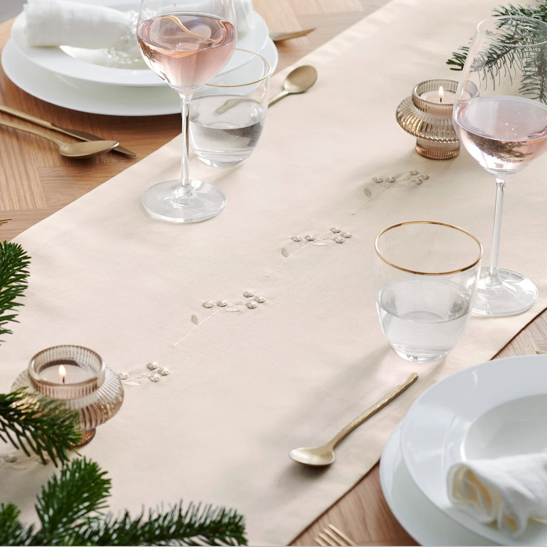 رانر از منسوجاتی است که دکوراسیون داخلی منزل شما را جذاب و دلنشین می کند. آن را بر روی میز ناهارخوری یا پیشخوان خانه می توانید قرار دهید و به تنهایی بر روی میز بیندازید یا زیر آن را با رومیزی پر کنید. در هر دو صورت خانه شما زیبا می شود. رانر کرم با گلدوزی شاخه توت چیبو با هر سبک خانه ای ست می شود.
