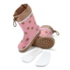 رین بوت بچگانه صورتی خال خالی چیبو گزینه ای عالی برای استفاده در شرایط آب و هوایی مرطوب و بارانی است. آن ها نه تنها از پای کودکان در برابر آب و گل و لای محافظت می کنند، بلکه راحتی و امنیت را نیز فراهم می آورند. دارای آستر پشمی گرم هستند که نه تنها از سرد شدن پاها جلوگیری می کند بلکه احساس نرمی و راحتی را برای شما فراهم می آورد.
