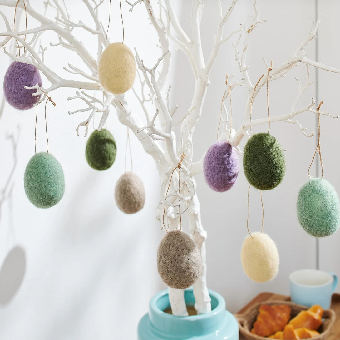 رنگ‌ بندی این ست شامل 2 عدد زرد، 2 عدد بنفش، 2 عدد سبز روشن، 2 عدد سبز تیره و 2 عدد قهوه ای است. ترکیبی که حس شادابی و طراوت فصل بهار را به زیبایی منتقل می‌کند. هر تخم‌ مرغ دارای هسته‌ ای از یونولیت سبک و مقاوم است و بخش بیرونی آن کاملاً با نمد نرم و لطیف پوشانده شده است.