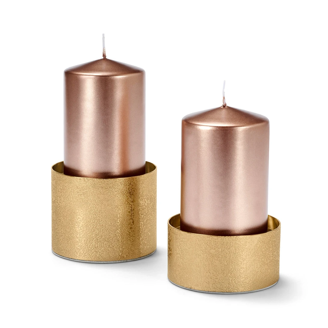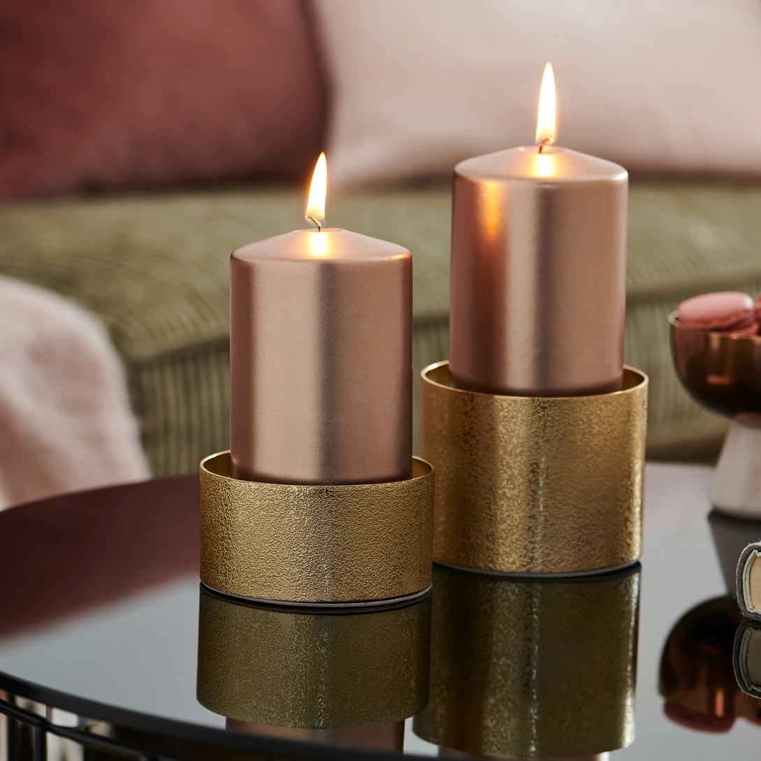 جا شمعی بزرگ با ارتفاع تقریبی 8 سانتی متر و قطر 10 سانتی متر، فضایی ایده آل برای شمع های ستونی متوسط و بزرگ فراهم کرده و حضور آن روی میز یا دکوراسیون، حس استحکام و لوکس بودن را منتقل می نماید. جا شمعی کوچک با ارتفاع حدود 5 سانتی متر و قطر 10 سانتی متر، مناسب شمع های کوتاه تر بوده و برای ایجاد توازن بصری در کنار مدل بزرگ تر بسیار کاربردی است.