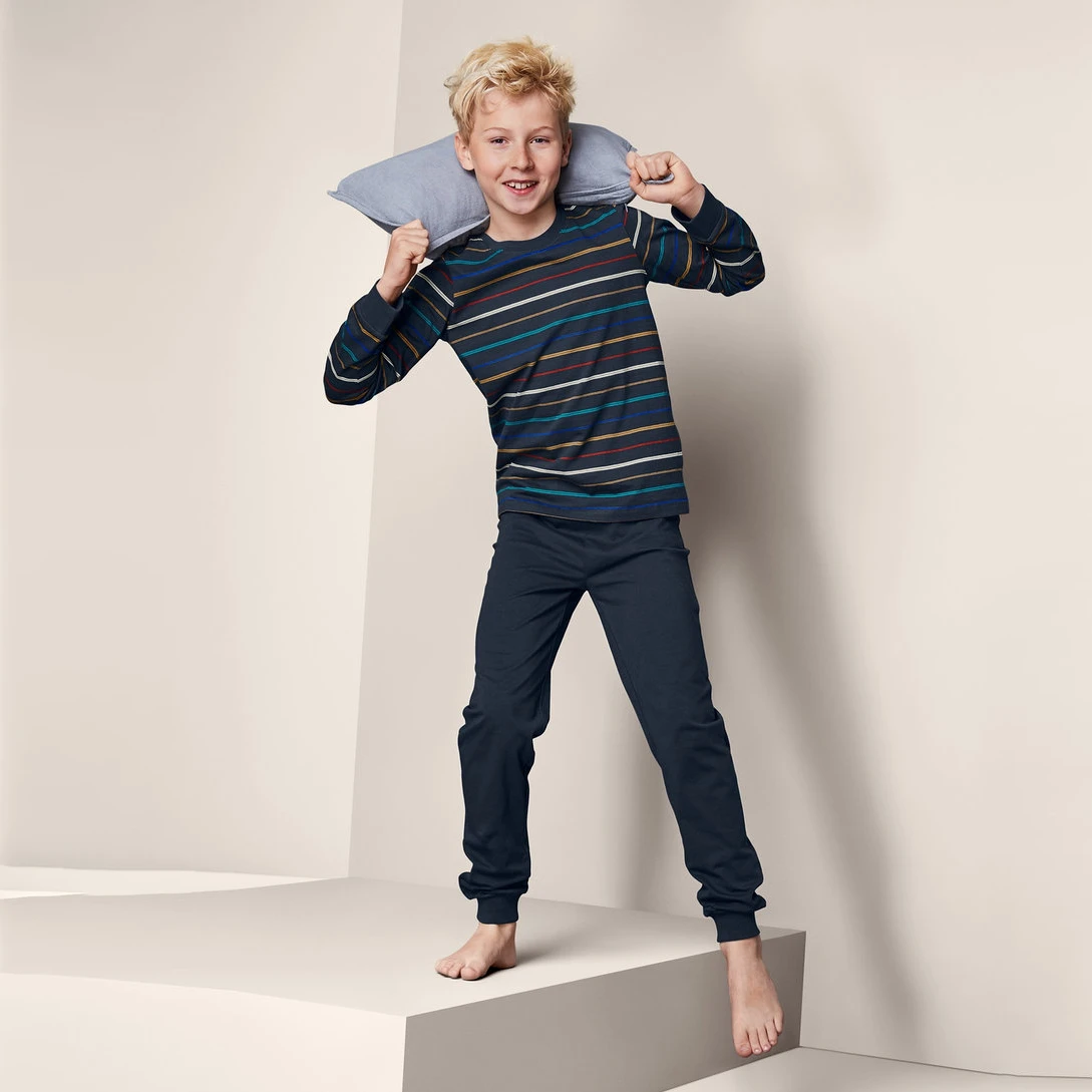 ست راحتی راه راه پسرانه چیبو به دلیل راحتی و ظاهری زیبا محبوبیت زیادی پیدا کرده است. از پنبه ارگانیک تولید شده، ویژگی های زیادی از جمله راحتی و دوام دارد. پنبه به دلیل نرمی و لطافت بالا، بسیار مناسب پوست حساس کودکان است.