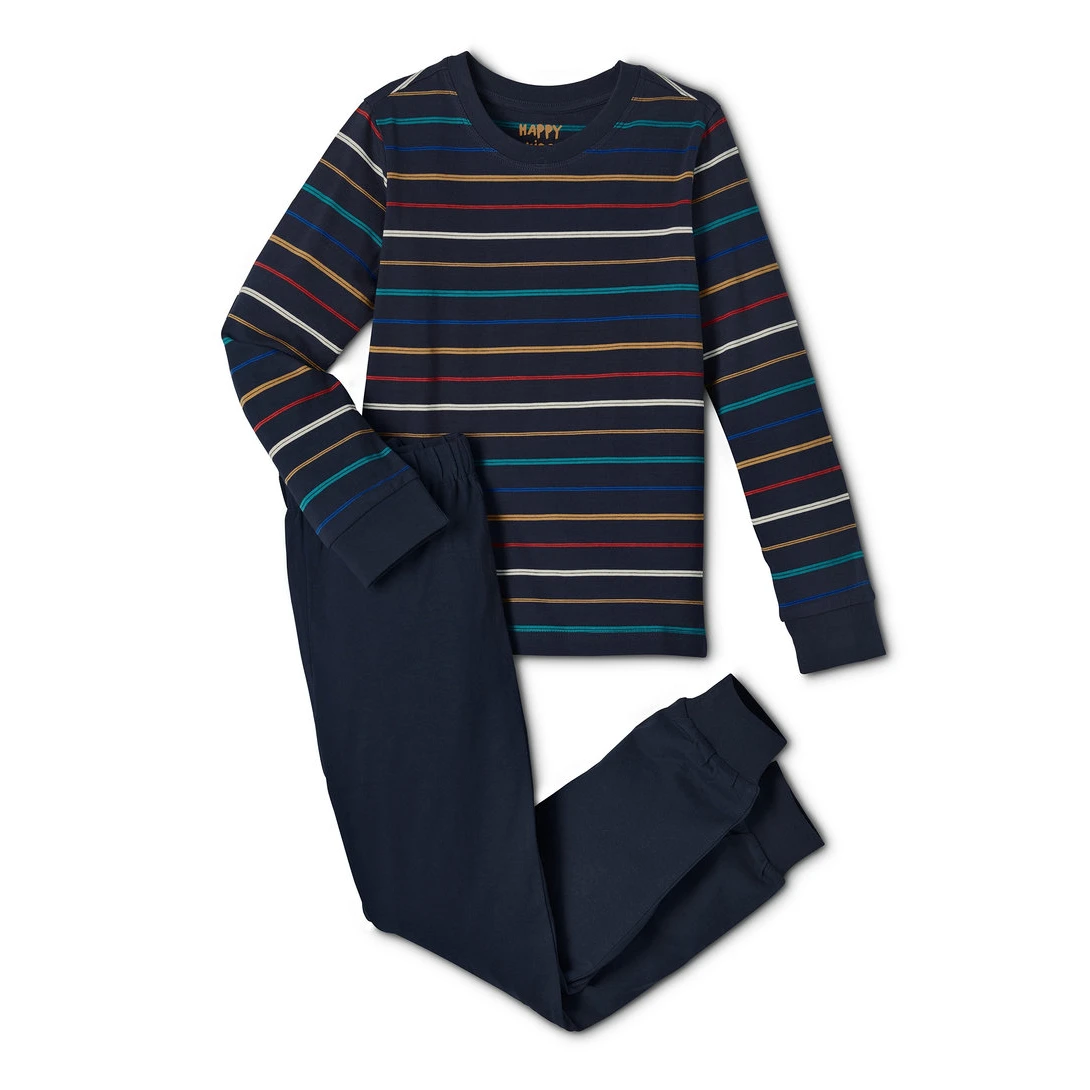 ست راحتی راه راه پسرانه چیبو شامل تیشرت آستین بلند راه راه و شلوار راحتی مچی است. شلوار آن دارای کمری کشی است که استراحت، نشستن، برخواستن و همچنین استفاده در طولانی مدت دلنشین باشد. تیشرت با یقه گرد راحتی در تعویض و پوشیدن را برای کودمان فراهم می کند.
