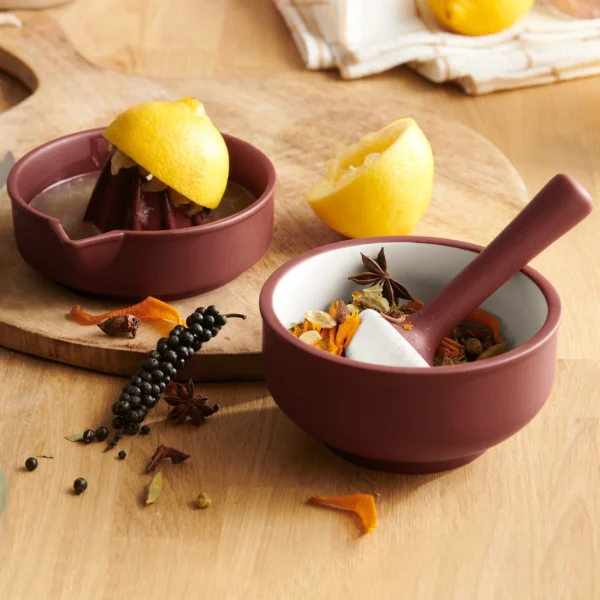 ست کاربردی چیبو شامل هاون، دسته هاون و آبمیوه گیری از جنس چینی با کیفیت بالا است. طراحی آن با قابلیت روی هم قرار گرفتن، باعث صرفه جویی در فضا می شود. سطح داخلی زبر هاون خرد کردن گیاهان، ادویه ها و مواد خشک را آسان تر کرده و آبمیوه گیر پیستونی امکان گرفتن آب انواع مرکبات و میوه را به شکلی سریع و مؤثر فراهم می کند.
