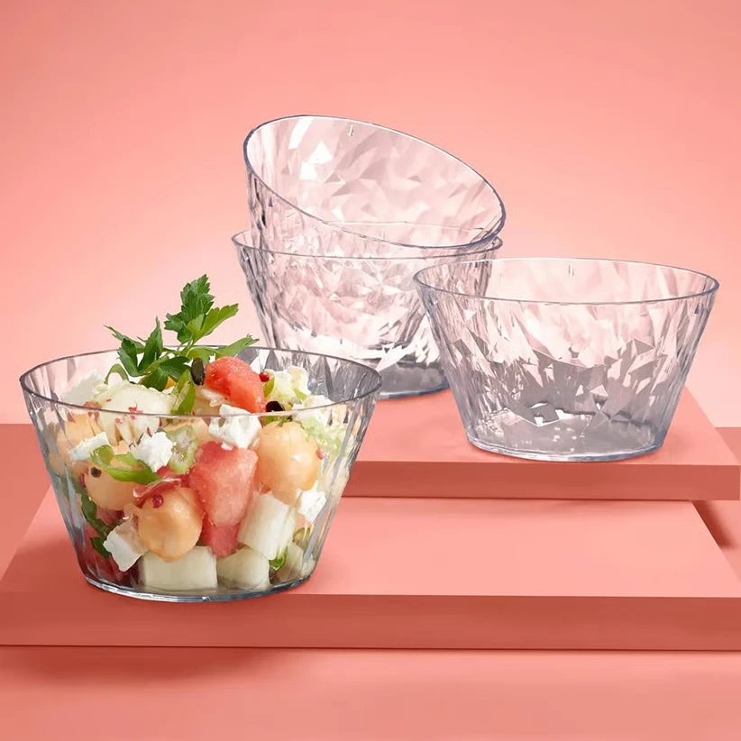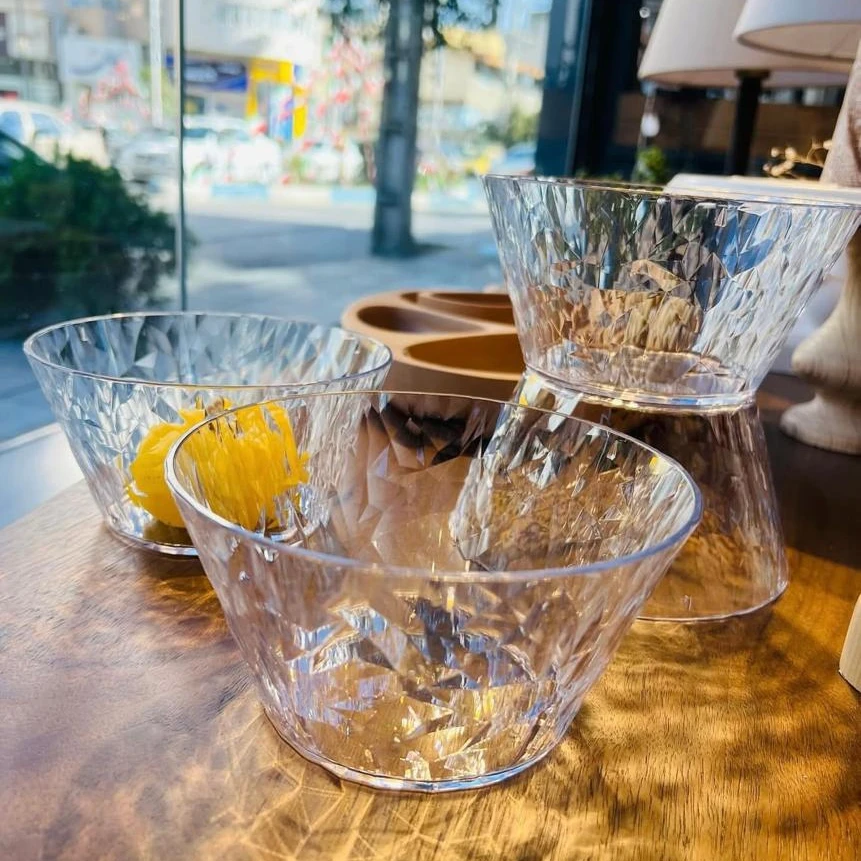 کاسه ها از پلاستیک فشرده (تریتان) با کیفیت بالا ساخته شده اند، ماده ای بسیار مقاوم در برابر خوردگی و شکستگی که طول عمر بالایی دارد. شفافیت و طراحی کریستالی ست کاسه سرو چیبو، امکان مشاهده محتویات داخل کاسه را فراهم می کند و جلوه ای زیبا به میز شما می بخشد.