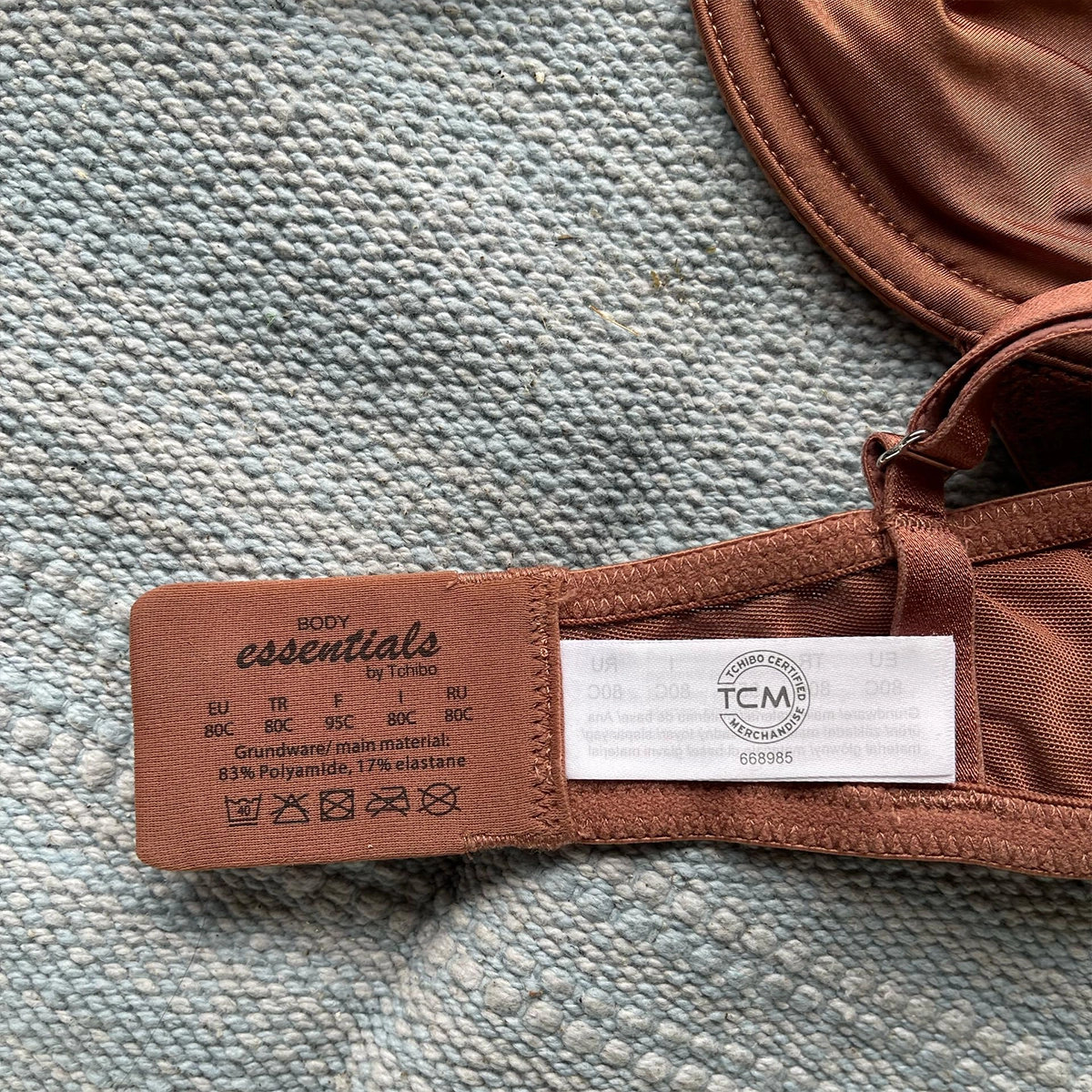 سوتین راحتی Tchibo دارای بند با قابلیت تنظیم طول بوده و غزن در پشت با سه درجه تنظیم سایز می باشد. برای شستشوی آن می توانید از ماشین لباسشویی با چرخه ملایم 40 درجه سانتی گراد استفاده نمایید. فروشگاه چیبوکالا از سوتین فنردار بلوطی چیبو در سایز 80B , 80C , 85B موجود دارد.