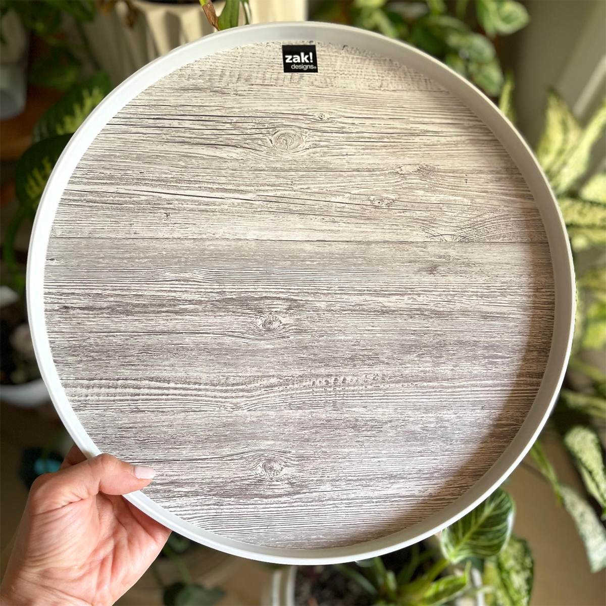 سینی ملامین زاک دیزاین با طراحی خاص و کاربردی، گزینه ای عالی برای استفاده روزمره یا پذیرایی رسمی است. این سینی با قطر 45 سانتی متر فضای کافی برای قرار دادن انواع ظروف، لیوان ها یا خوراکی ها را فراهم می کند. سطح آن دارای طرح چوب طبیعی بوده که جلوه ای گرم و زیبا به محیط می بخشد و حس اصالت و طبیعت را القا می کند.