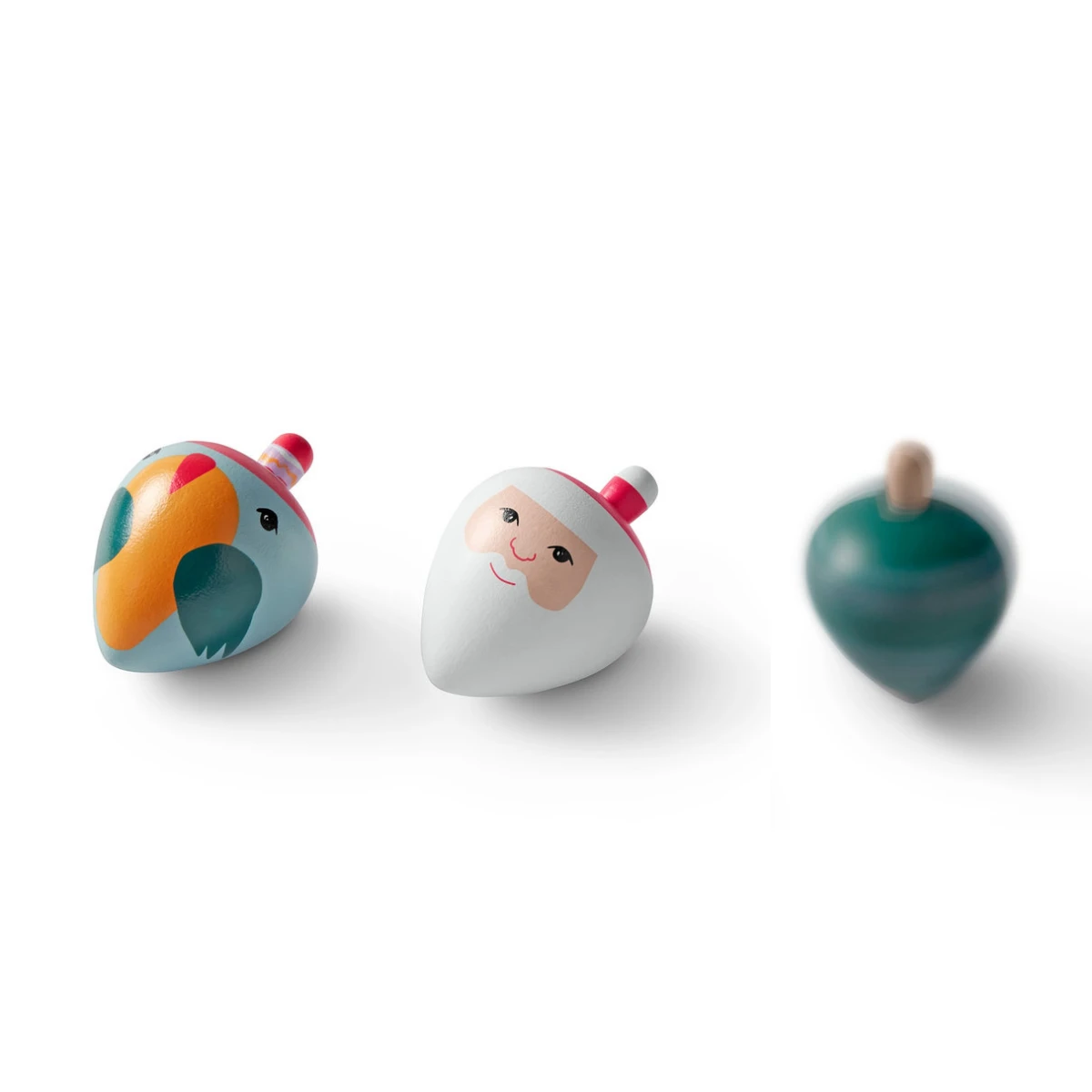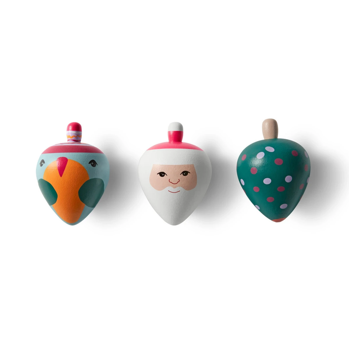 طراحی این اسباب بازی ها با تمی کاملاً کریسمسی و در رنگ های چند رنگ انجام شده که به آن ها جلوه ای شاد، کودکانه و جذاب می بخشد. ارتفاع هر فرفره به طور تقریبی 7 سانتی متر و حدود 5 سانتی متر قطر دارد و اندازه ای مناسب برای قرارگیری در دست کودکان دارد، بدون آنکه بیش از حد کوچک یا بزرگ باشند.