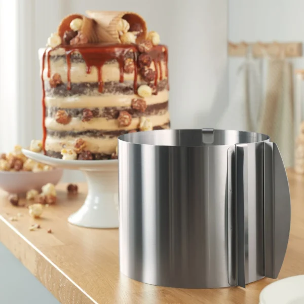 یکی از ویژگی های برجسته این قالب، قابلیت تنظیم قطر آن است. قطر قالب را می توان به صورت پیوسته از حدود 16 تا 30 سانتی متر تغییر داد. این قابلیت انعطاف پذیری فوق العاده به شما امکان می دهد با یک قالب، انواع کیک ها را در اندازه های مختلف آماده کنید.