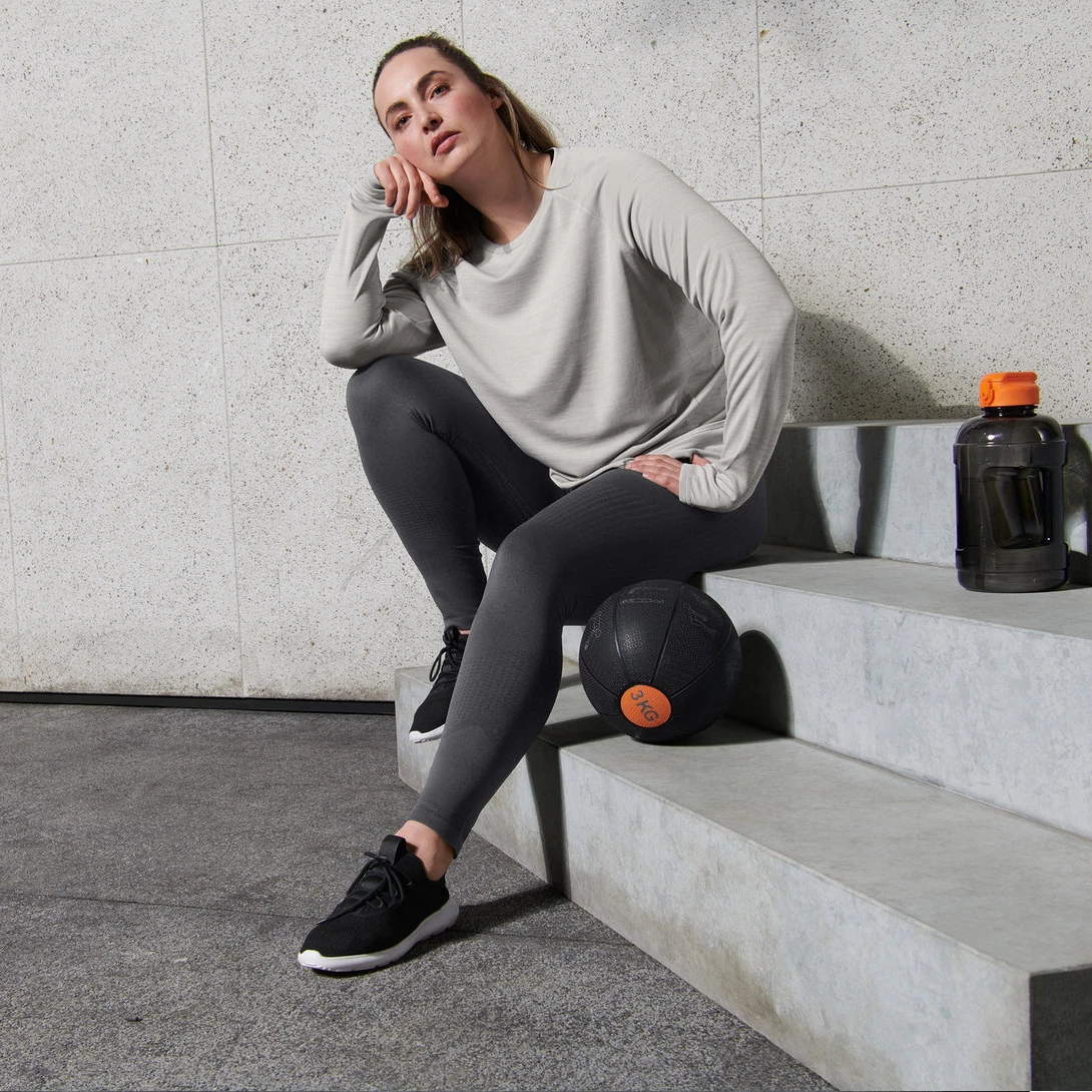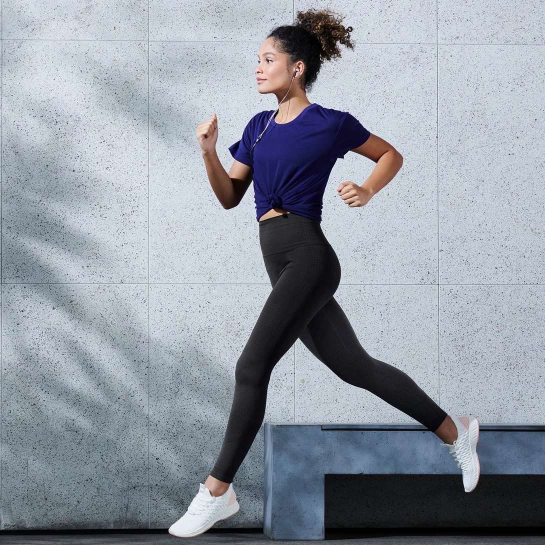 لگ مشکی تنفس پذیر زنانه چیبو کشی و جذب با کمری پهن است که فرم زیبا و جذابی به بدن می دهد. انعطاف و نرمی آن به همراه کشسانی با فیبر Creora باعث می شود تا علاوه بر ورزش در روزمره نیز پوشیده شود.