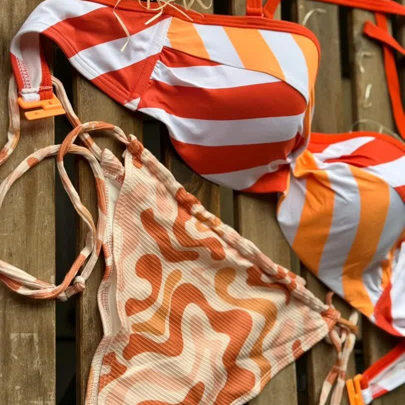مایو از ملزومات شنا در دریا و استخر است که در انواع مختلفی و سلیقه های گوناگونی تولید می شود. اگر به دنبال یک بیکینی شنا هستید که بتوانید بارها پوشیده و از طرح آن لذت ببرید از مایو بیکینی گره ای برند SWIM Society استفاده کنید.جنس مایو از پلی استر نرم و لطیف بوده که علاوه بر استفاده به صورت روزمره، برای سفر نیز مناسب است. ظاهر آن با رنگ های شاد طراحی شده همچنین دارای کشسانی می باشد. رنگ آن به گونه ای است که با انواع سوتین ها ست شده و ترکیب زیبایی به وجود می آورد.بند کمری آن به صورت گره در طرفین فیکس شده و قابلیت تنظیم سایز دارد بنابراین فری سایز می باشد. به لطف الیاف لیکرای موجود در آن در برابر کلر و نور خورشید مقاوم بوده و علاوه بر سبکی، سریع خشک شده و ظاهر و فرم خود را از دست نمی دهد.فروشگاه چیبو کالا از مایو شورت تک برند SWIM Society در سایز های 34 (ارتفاع 21 سانتی متر) , 36 (ارتفاع 22 سانتی متر) , 38 (ارتفاع 24 سانتی متر) , 40 (ارتفاع 26 سانتی متر) و 42 (ارتفاع 27 سانتی متر) موجود دارد. ارتفاع این ست از کمر تا فاق محاسبه شده است.