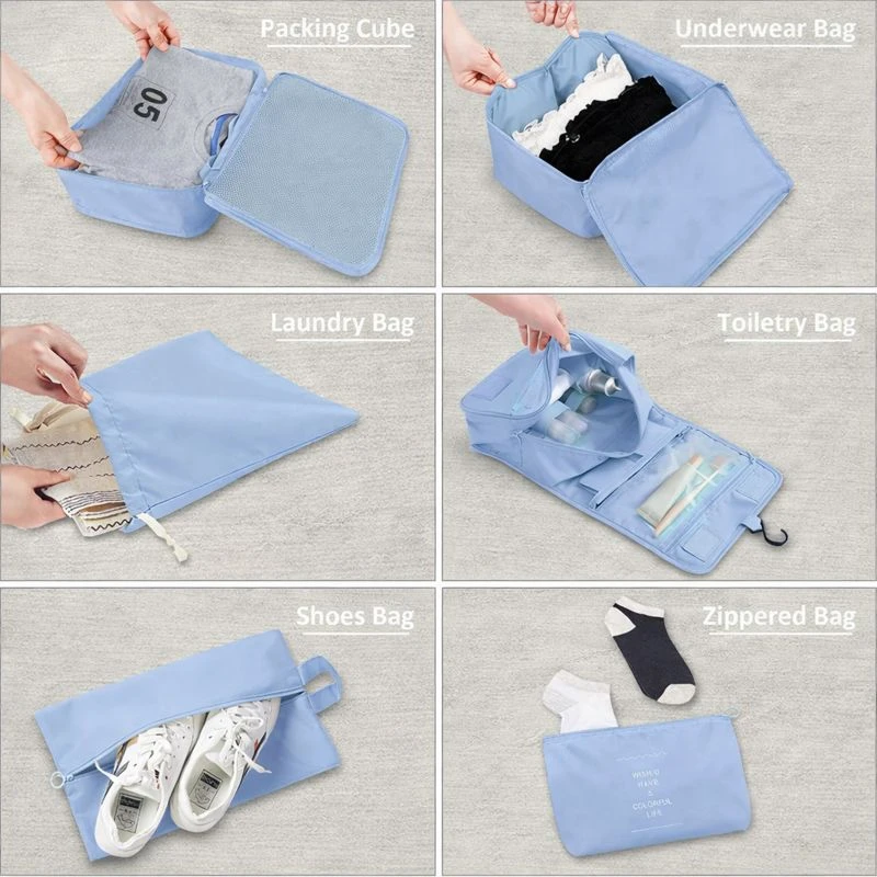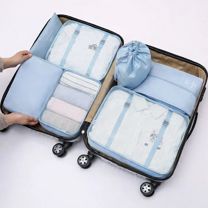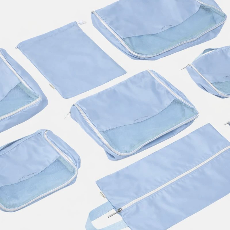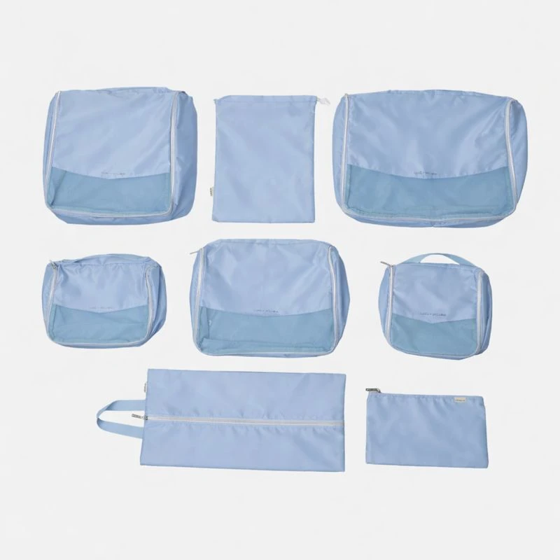 جنس کیف ها پلی استر بوده که علاوه بر سبکی، به دلیل استفاده از متریال مشبک امکان گردش هوا را فراهم می کند و از ایجاد بوی نامطبوع در داخل کیف جلوگیری می شود. ست کیف آبی 8 تایی برند Luxe+Willow دارای زیپ باکیفیت برای بسته شدن ایمن هستند. رنگ این ست در طیف آبی است که ظاهری شیک، ساده و همیشه پسند دارد و برای استفاده در مسافرت های بلند مدت و کوتاه مناسب می باشد.