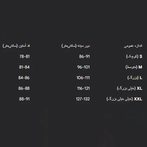 • سایز XL,L,S (دارای چارت سایزبندی)