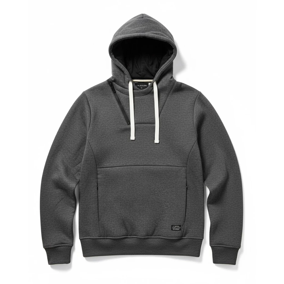جنس هودی طوسی مردانه طاهاری از پنبه خالص بوده که سازگار با پوست و همچنین بدون آبرفت است. کلاه با بند تنظیم سایز، محافظ گردن، کشباف در سر آستین و کمر و جیب زیپی در جلو از ویژگی های ظاهری آن است. همچنین دارای لایه کرکی داخلی برای حفظ گرمای بدن می باشد.