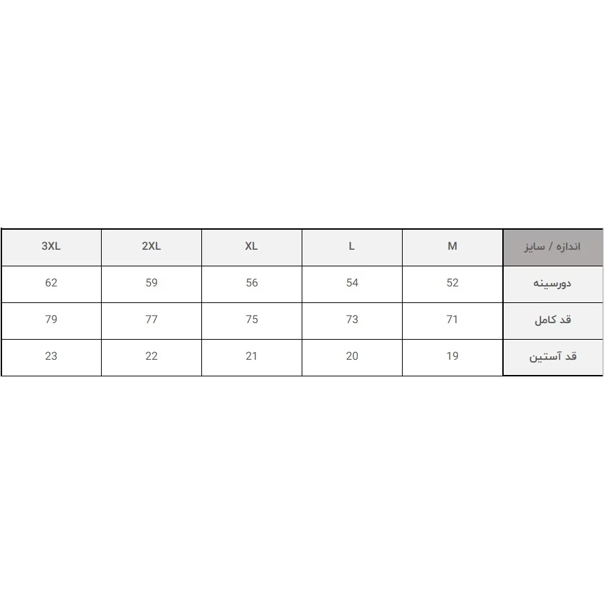 راهنمای سایز: چارت سایزبندی را در گالری عکس ها مشاهده نمایید.