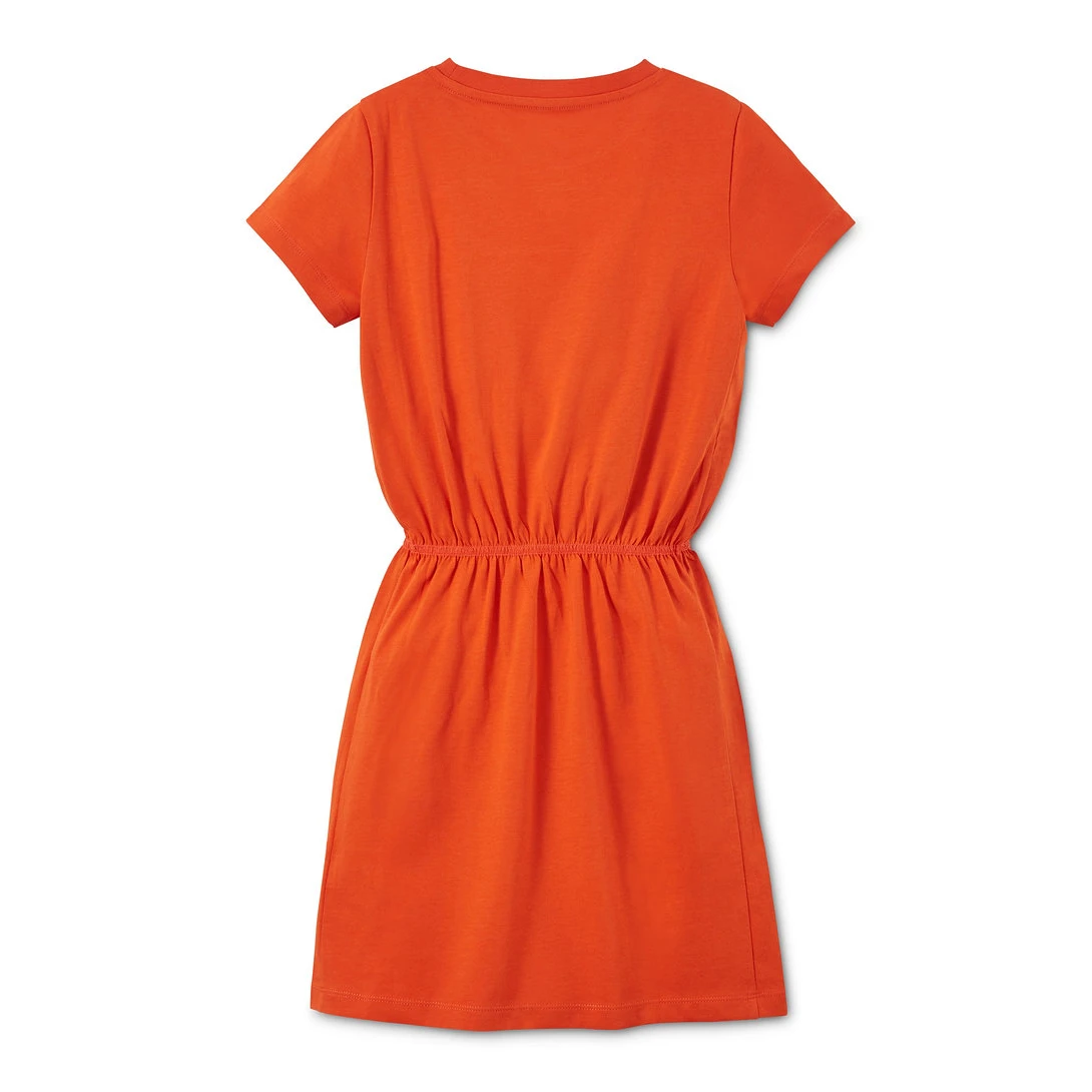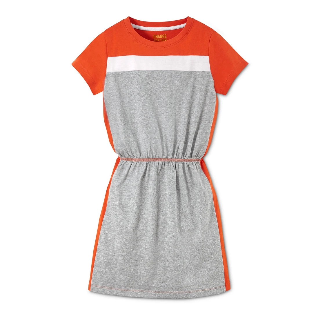 جنس آن از پنبه ارگانیک نرم و با کیفیت، سبک و لخت بخاطر ریزشی که دارد به زیبایی دیده می شود. ترکیب رنگ نارنجی با طوسی، آستین کوتاه و کمری کشی از ویژگی های ظاهری آن است.