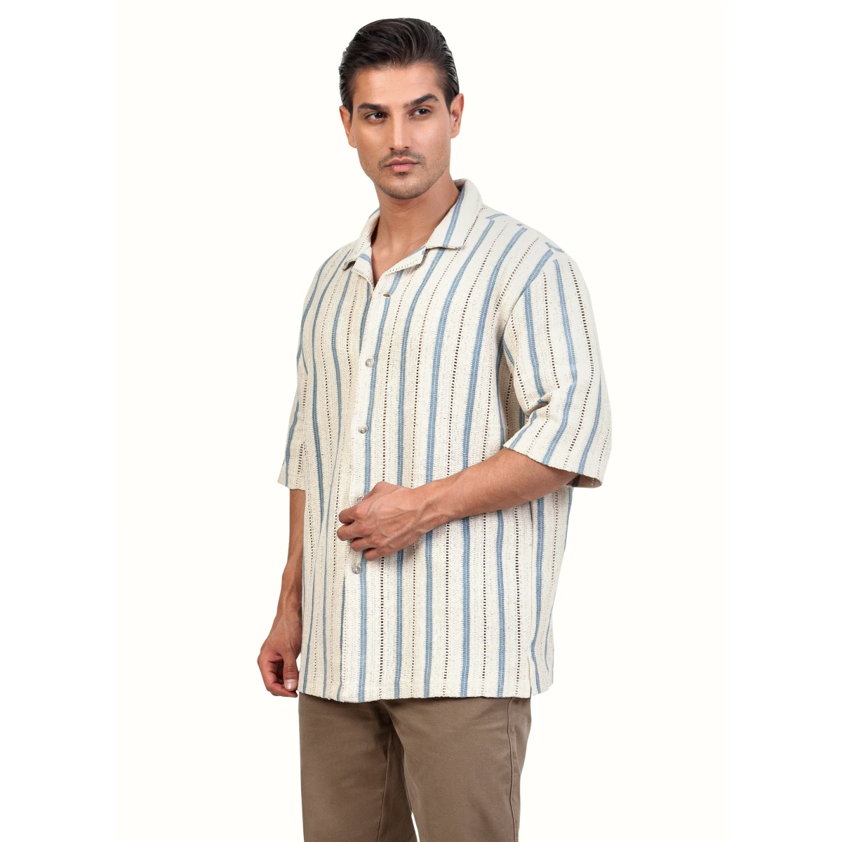 پیراهن حصیری آبی اژه ای مردانه کانی راش