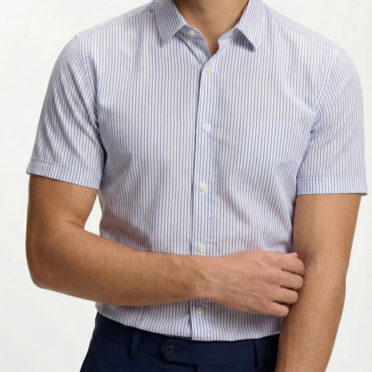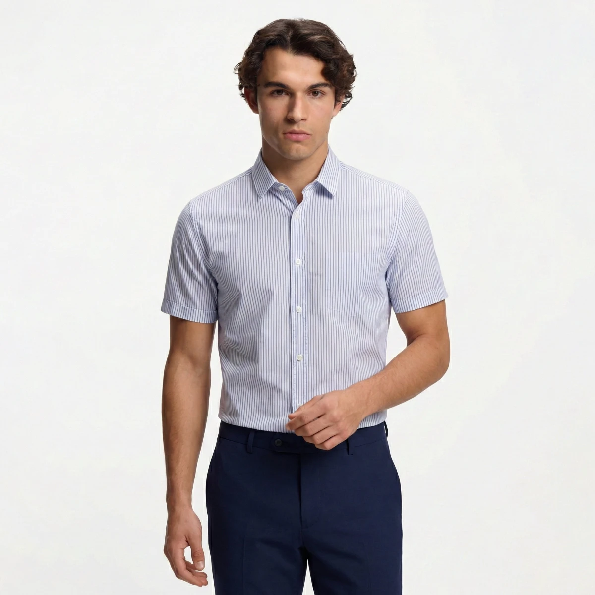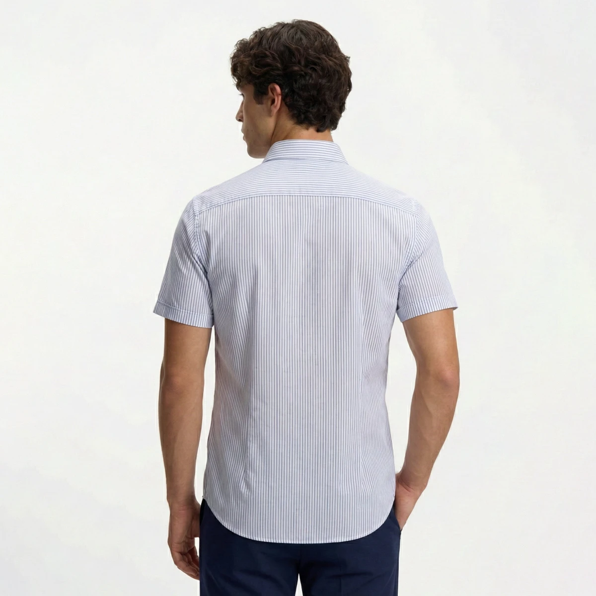 ویژگی های پیراهن راه راه آستین کوتاه آبی شامگاه کانی راش کد 4141196