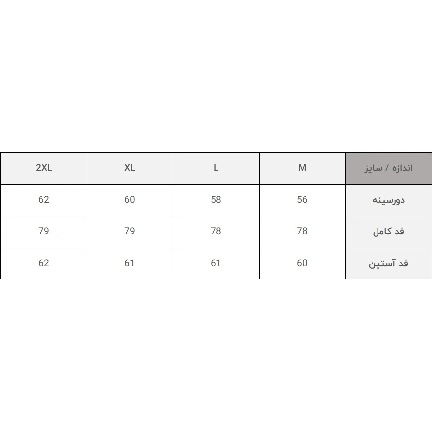 راهنمای سایز: چارت سایزبندی را در گالری عکس ها مشاهده نمایید.