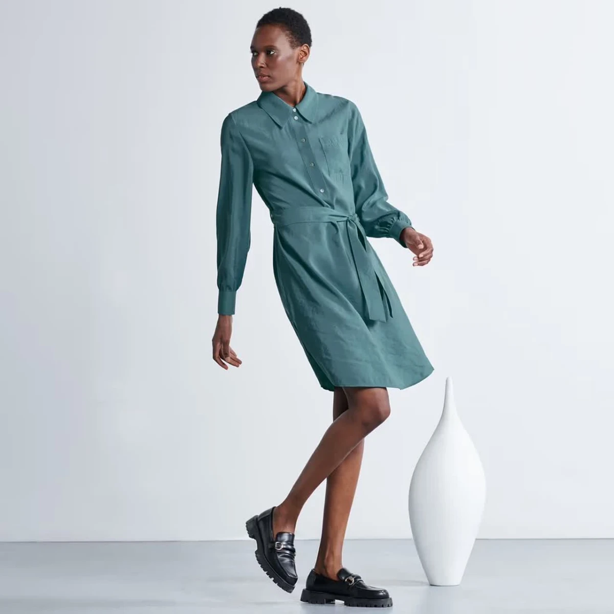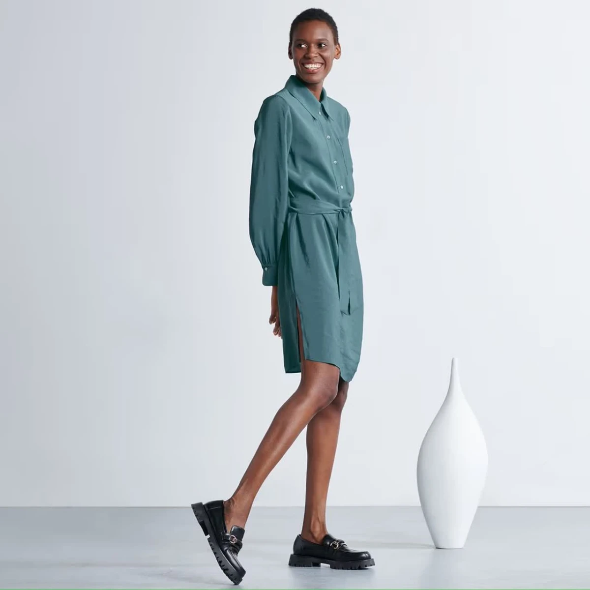 اگر به دنبال لباسی هستید که هم شیک باشد و هم در طول روز احساس راحتی کامل به شما بدهد، پیراهن سبز کوتاه زنانه چیبو انتخابی ایده آل است. این لباس با طراحی مدرن و جزئیات کاربردی، گزینه ای مناسب برای استایل های روزمره، محل کار یا حتی دورهمی های نیمه رسمی به شمار می رود.الیاف TENCEL™ به کار رفته در این لباس، باعث نرمی فوق العاده، سبکی و ریزش طبیعی پارچه شده است. ویژگی ای که آن را برای استفاده طولانی مدت بسیار دلپذیر می کند. ترکیب 84 درصد مودال و 16 درصد پلی استر، دوام مناسب لباس را در کنار لطافت آن تضمین می کند.قد میدی، کمربند قابل تنظیم در ناحیه کمر و فرم Regular Fit، به خوش فرم ایستادن لباس روی اندام کمک می کند. وجود ردیف دکمه در بالاتنه و جیب روکار روی سینه چپ، ظاهری الهام گرفته از پیراهن های کلاسیک به لباس بخشیده است. چاک های جانبی آزادی حرکت بیشتری ایجاد کرده و لباس را برای استفاده روزمره کاربردی تر می سازد.جزئیاتی مانند سرآستین مچی با دکمه نشان دهنده دقت در طراحی این مدل است. رنگ سبز مریم گلی نیز انتخابی مدرن و آرامش بخش محسوب شده که به راحتی با انواع کفش و اکسسوری ست می شود.فروشگاه چیبوکالا از پیراهن میدی زنانه Tchibo در سایزهای 36 , 38 , 42 , 44 , 46 موجود دارد. شستشوی آن در ماشین لباسشویی با چرخه ملایم 30 درجه سانتی گراد امکان پذیر است.راهنمای سایز: چارت سایزبندی را در گالری عکس ها مشاهده نمایید.