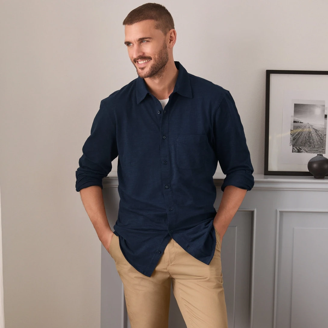 پیراهن از جمله لباس های مهم و اساسی آقایان است که در تمامی مناسبت ها و روزمره کاربرد دارد. محبوبیت پیراهن مردانه در بین خانم ها و دیده می شود. پیراهن مردانه کشی سرمه ای چیبو با استایل راحتی که دارد در مهمانی های خودمانی، روزمره، سرکار و … پوشیده می شود.