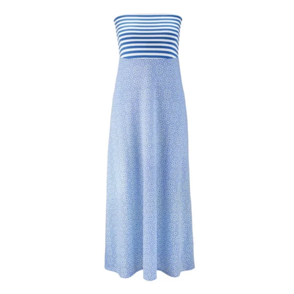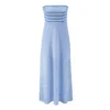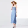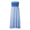 پیراهن آبی جرسی زنانه Tchibo بدون آستین و بند طراحی شده و با یقه‌ ای صاف و ساده ظاهری مینیمال و شیک ایجاد می‌ کند. فرم کشی و بدون بست آن پوشیدن لباس را بسیار راحت کرده و به‌ خوبی روی بدن می‌ نشیند. فروشگاه چیبو کالا از آن در سایز S موجود دارد.