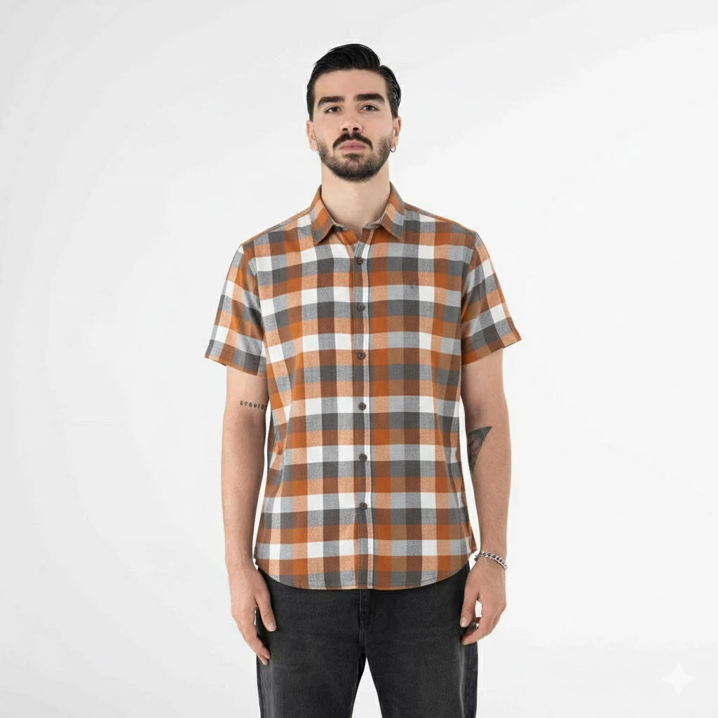 پیراهن آستین کوتاه لباس محبوب آقایان در فصل گرم و تابستان است که در روزمره و مهمانی قابل استفاده می باشد. اگر به جنس لباس تابستانه خود اهمیت می دهید پیشنهاد ما پیراهن چهارخانه طوسی خردلی کانی راش است که از 100% پنبه تولید شده است.