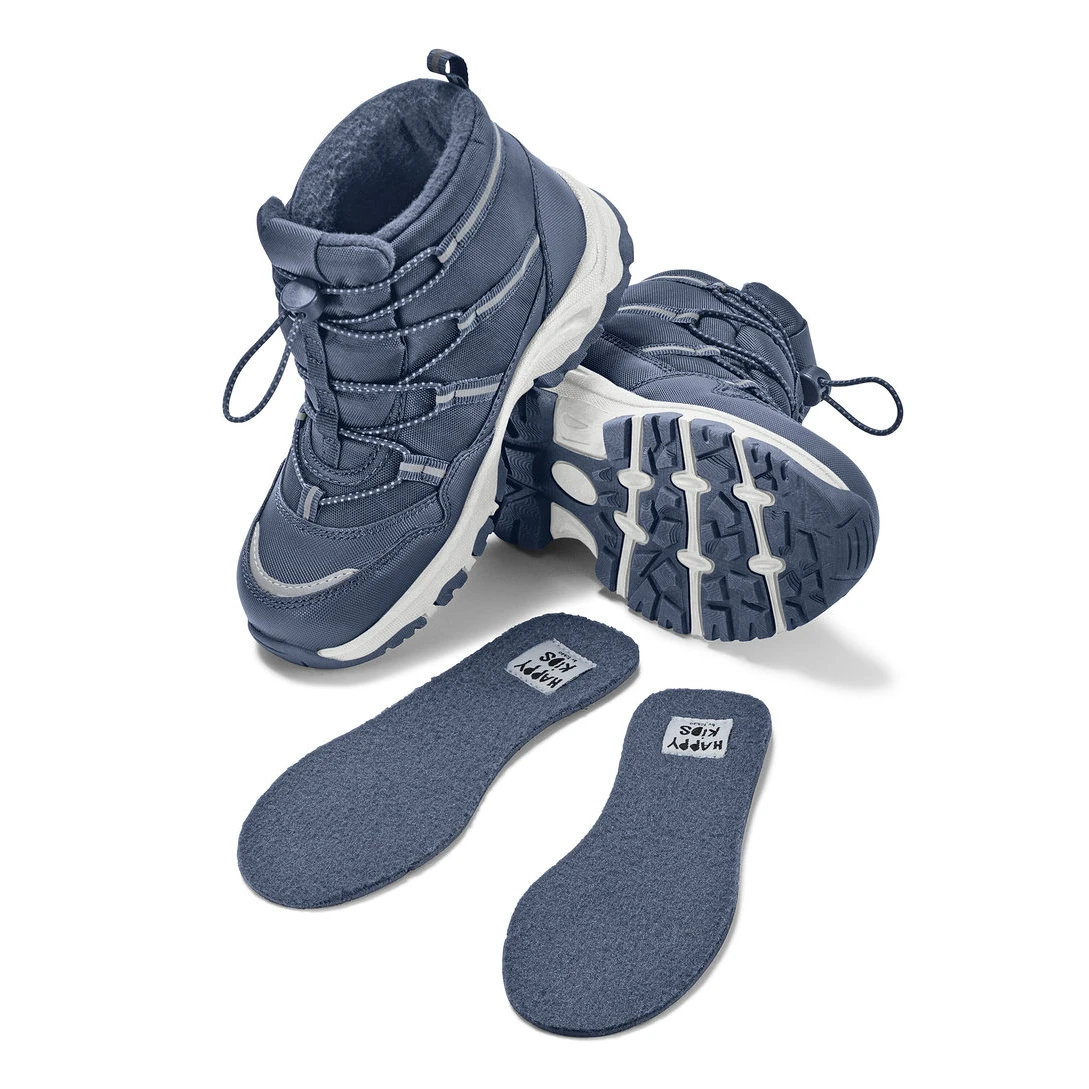 در داخل زمستانی سرمه ای بچگانه Tchibo ، کفی داخلی قابل جدا شدن طراحی شده که به راحتی تمیز می شود و علاوه بر آن، کفی اضافی برای تنظیم سایز نیز وجود دارد تا در صورت نیاز، اندازه ی داخلی چکمه با رشد پای کودک تنظیم شود. فروشگاه چیبو کالا از این چکمه در سایز های 26-27 , 30-31 , 32-33 موجود دارد.