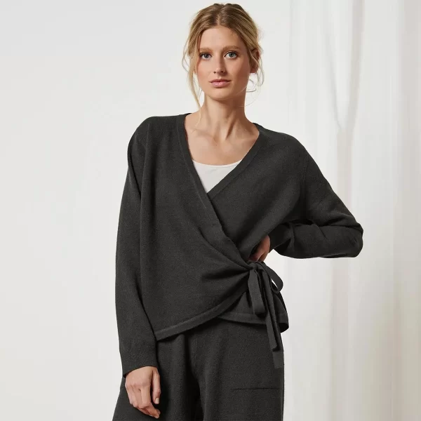 خانه » فروشگاه » زنانه » ژاکت، پلیور و سویشرت » ژاکت پشمی جلو باز گره ای زنانه چیبو