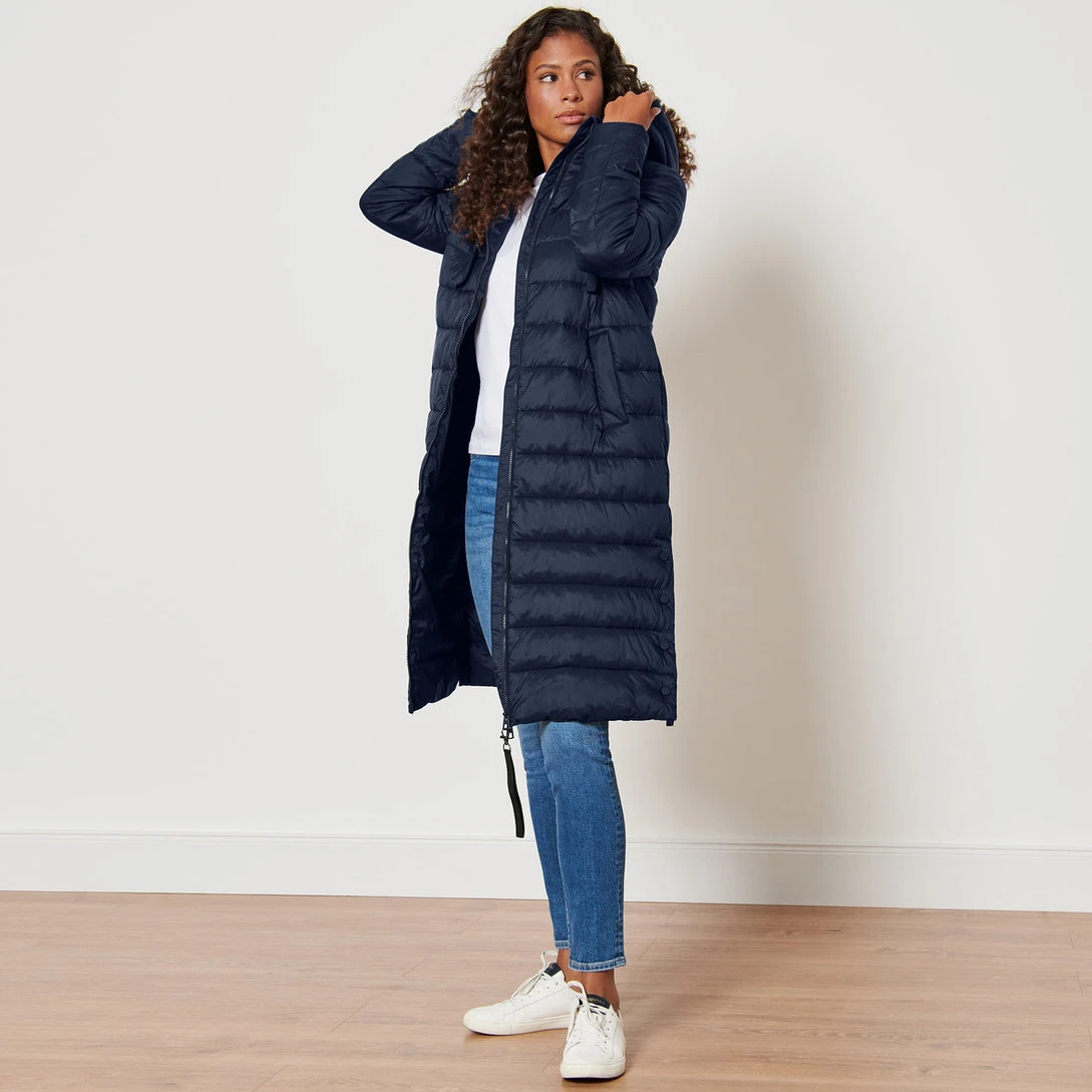 قد این پافر طوسی گرم زنانه Tchibo تا پایین زانو بوده و دارای دوخت های زیبا می باشد. شستشوی آن نیز آسان بوده و می توان آن را با دمای 40 درجه در ماشین لباسشویی شست. کاپشن پر سرمه ای زنانه چیبو در فروشگاه چیبوکالا با سایز 40 موجود است که قواره دار بوده و برای سایز های بزرگ تر نیز مناسب می باشد.
