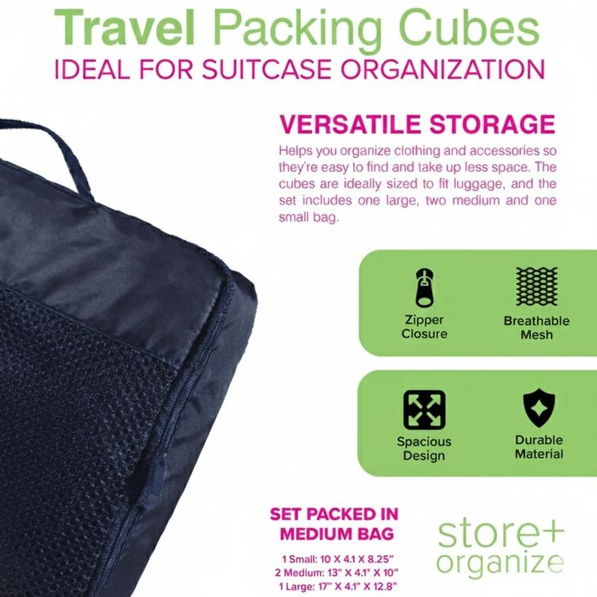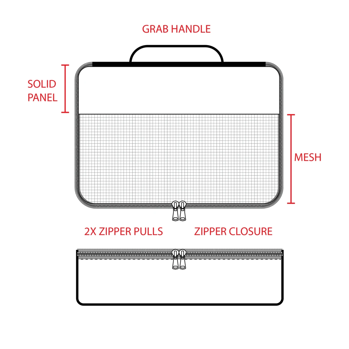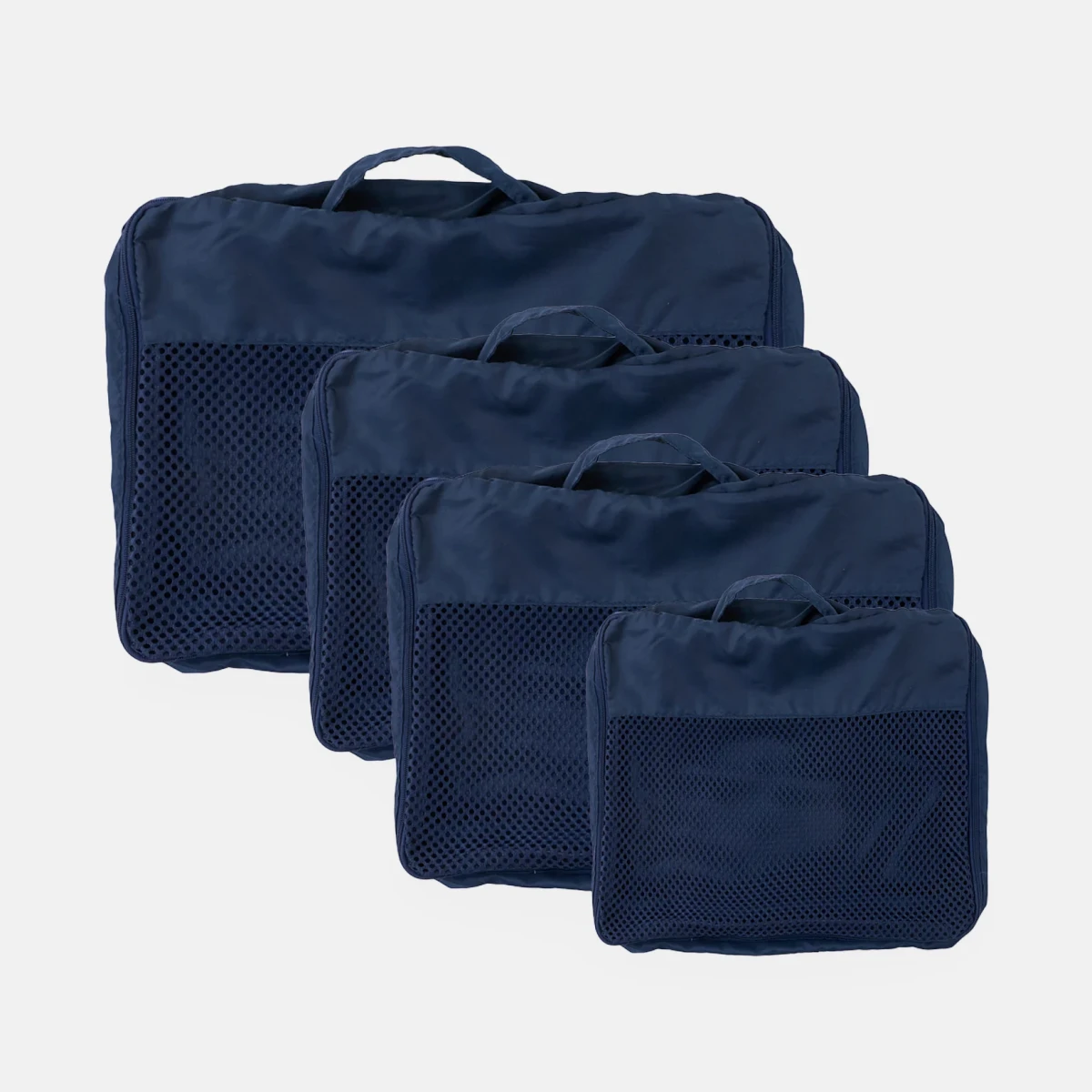 کیف بزرگ با ابعاد 32×10×43 سانتی متر برای وسایل حجیم تر یا لباس های بزرگ تر بسیار مناسب بوده، کیف های متوسط با ابعاد 25×10×33 سانتی متر برای لباس های سبک یا لوازم شخصی کاربرد دارد، و کیف کوچک با ابعاد 21×10×25 سانتی متر برای نگهداری وسایل ظریف تر و جمع و جور طراحی شده است. کل این ست بهصورت منظم داخل یک کیف متوسط بسته بندی شده که حمل و نگهداری آن را آسان تر می کند.