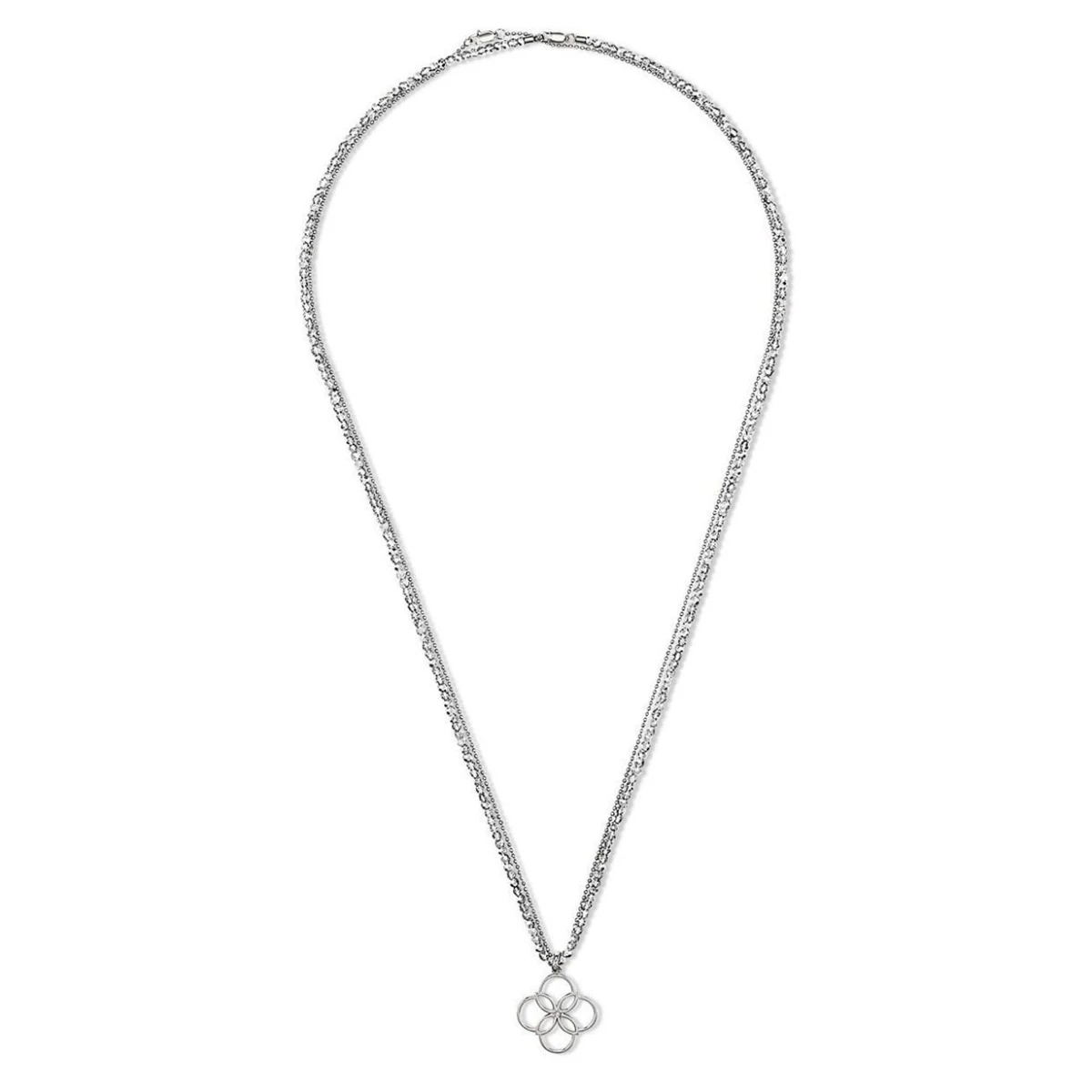 گردنبند 80 سانتیمتری چیبو کد 338854 Tchibo دارای دو زنجیر 80 سانتی متری می باشد. این زنجیر ها می توانند باهم و یا بصورت جداگانه استفاده شوند. یکی از زنجیر ها از جنس استیل و دیگری از جنس کریستال های شیشه ای چند وجهی می باشد.