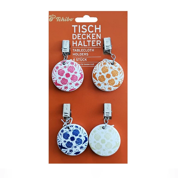 قطر هر آویز کلیپس ها برای محکم نگه داشتن رومیزی Tchibo حدود 4.5 سانتی متر و طول زنجیر حدود 3 سانتی متر می باشد. وزن هر کدام نیز نیز حدود 40 گرم است. طرح کشتی، لنگر، سکان و قایق به زیبایی آن افزوده است.